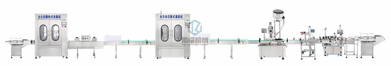 1.全自動生產(chǎn)線流程:人工把瓶放到送瓶轉盤上-自動洗瓶-自動高溫烘干殺菌-人工燈檢-自動灌裝-自動理蓋下蓋-自動鎖蓋-自動打碼-自動貼標-人工收瓶