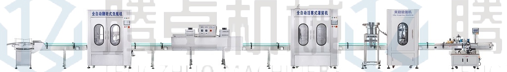 1.全自動(dòng)生產(chǎn)線流程:人工把瓶放到送瓶轉(zhuǎn)盤(pán)上-自動(dòng)洗瓶-自動(dòng)高溫烘干殺菌-自動(dòng)灌裝-人工燈檢-自動(dòng)理蓋下蓋-自動(dòng)旋蓋-自動(dòng)打碼-自動(dòng)貼標(biāo)-人工收瓶