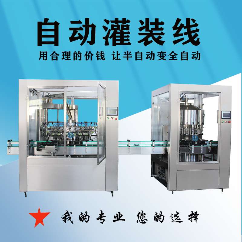 此生產(chǎn)線主要應(yīng)用于飲料酒類行業(yè)例如:各種飲料,白酒,黃酒,葡萄酒,果酒等水劑類產(chǎn)品,設(shè)備采用先進的光、電、氣一體化自動控制系統(tǒng),實現(xiàn)進瓶,定位,灌裝,出瓶自動化生產(chǎn)。